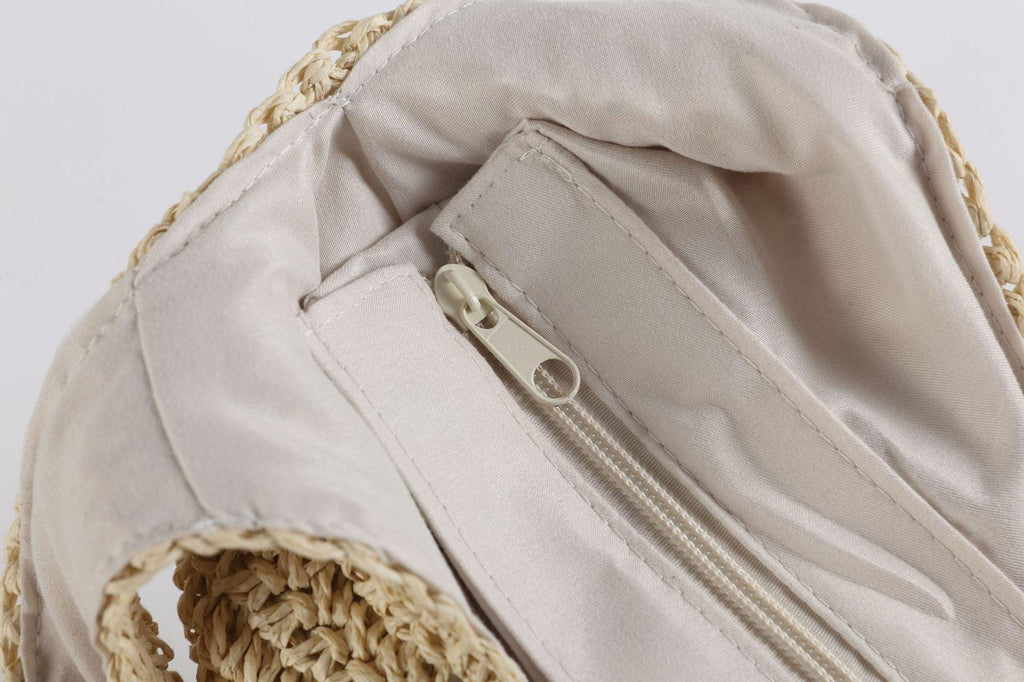 L'intérieur du sac à main Petra Straw comprend une poche pour téléphone portable et un compartiment intérieur, ce qui vous permet de garder vos essentiels organisés et facilement accessibles.