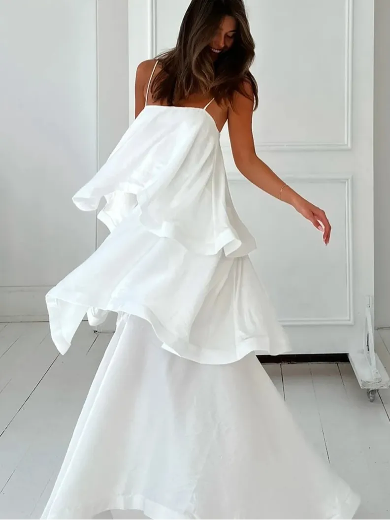 Isolde Tiered White Maxi Dress