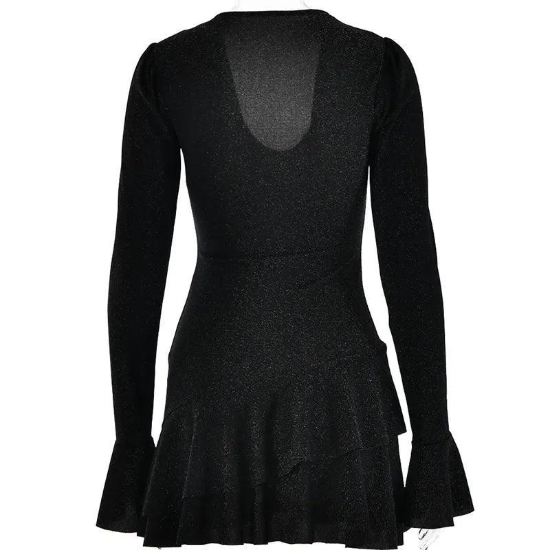 ठोस काले रंग पैलेट रहस्य और समय-निराशा का एक स्पर्श जोड़ता है, जिससे इस पोशाक को किसी भी विशेष अवसर के लिए एक आदर्श विकल्प बन जाता है। इसके अलावा, उपरोक्त-घुटने की लंबाई आपको अनुग्रह और आत्मविश्वास के साथ अपने पैरों को दिखाने की अनुमति देती है।