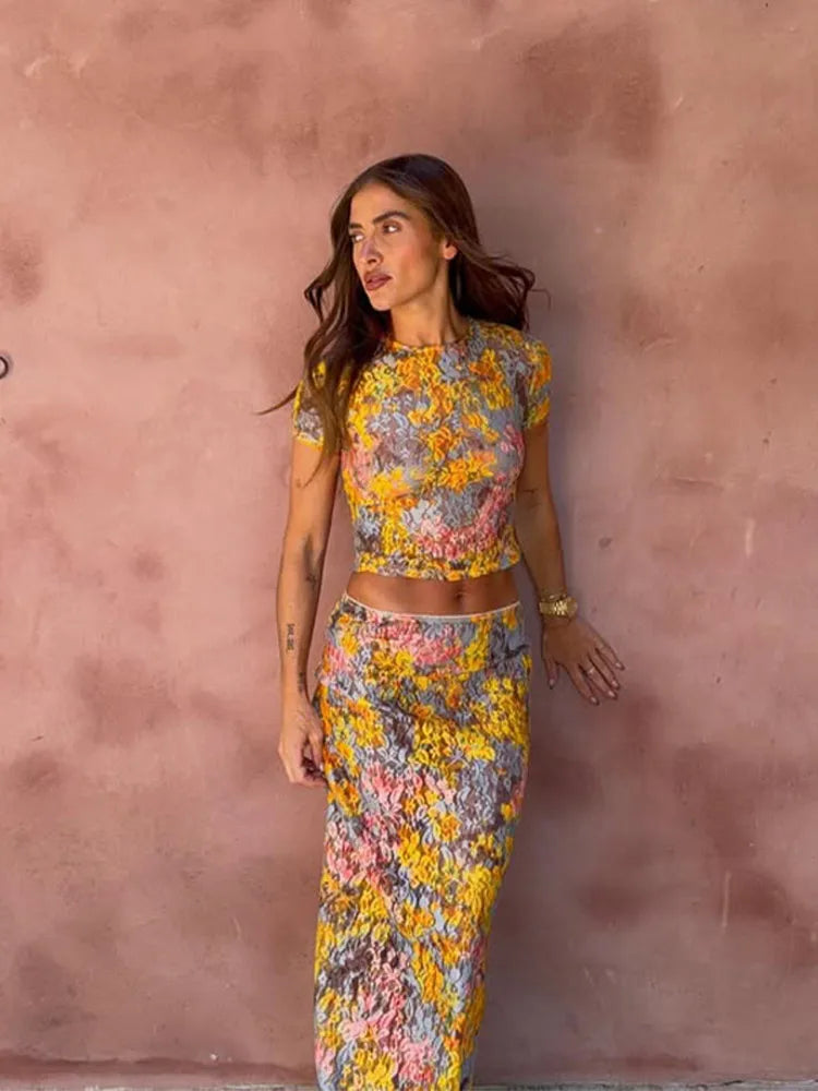 Aquí está el conjunto de falda floral