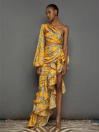 Платье Maribel с цветочным принтом и асимметричными рюшами