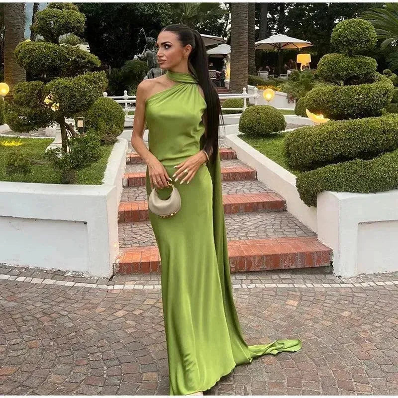 - Neckline: Diagonal collar